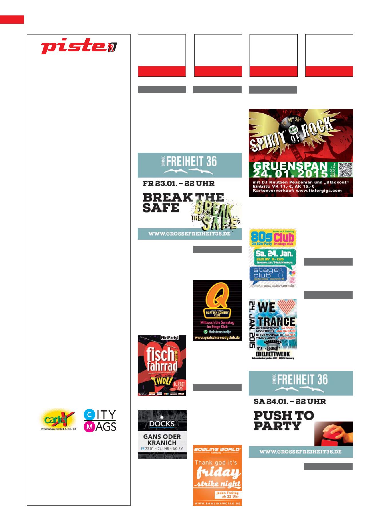 Die PISTE erscheint am 30. jeden Monats. Anzeigen- und Redakti-