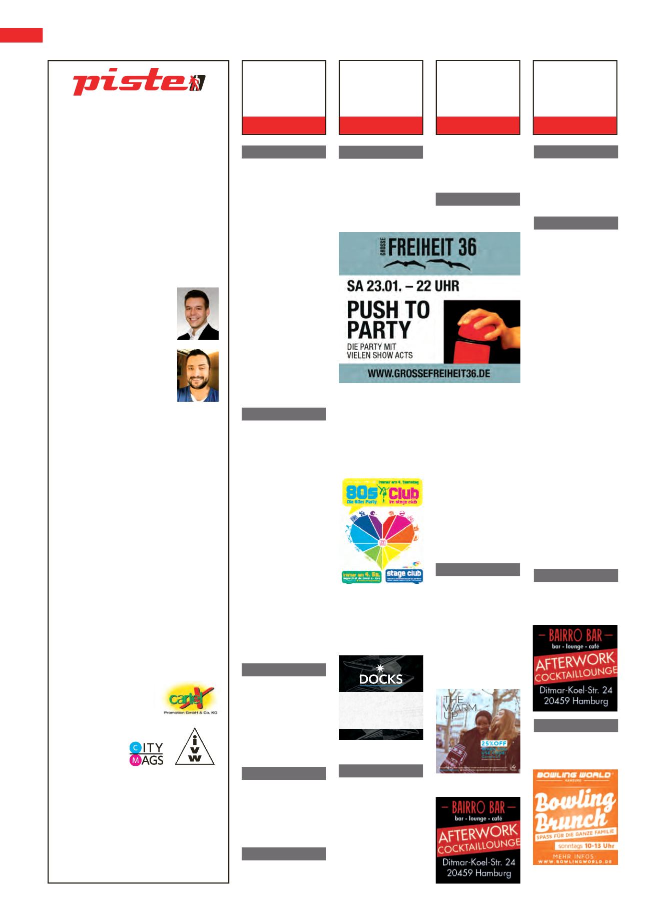 Die PISTE erscheint am 30. jeden Monats. Anzeigen- und Redakti-