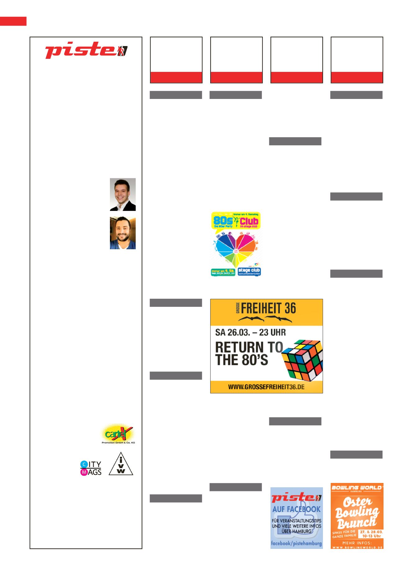 Die PISTE erscheint am 30. jeden Monats. Anzeigen- und Redakti-