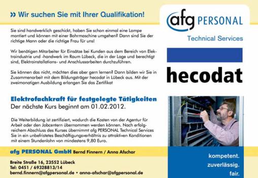 393663 oder bei Bernd Finnern von afg PERSONAL
