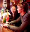 einem Getränk mit Freunden zusammensitzen.