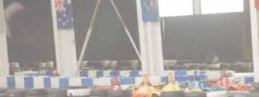 en versucht ihr mitten in der Bar den Ball zu fangen oder mit Messi das Tri-
