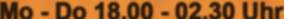 der Zeit von 18.00 Uhr bis 2.30 Uhr und freitags bis sonntags von