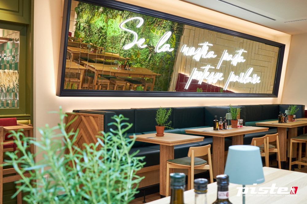 Das Herzstück und typisch VAPIANO: Die offene Küche und die gläserne Pasta Manifattura ist auch in Hamburg ein wichtiger Bestandteil. Hier werden täglich die vielfältigen Pasta-Spezialitäten von den Vapianisti frisch zubereitet.
