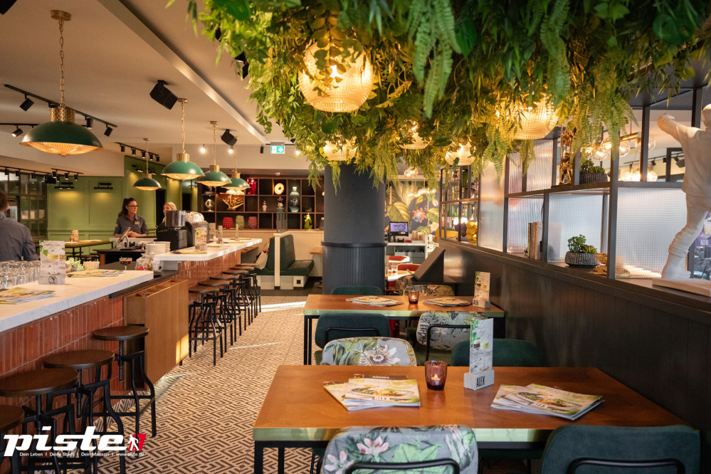 Das kulinarische Verwöhnprogramm ist entsprechend vielfältig. Jeden Morgen erwartet die Gäste ein reichhaltiges Frühstücksbuffet, das sich am Wochenende und an Feiertagen zum Brunchbuffet erweitert. Für das Mittag- und Abendessen stehen von Vorspeisen über Bowls, Flammkuchen, Schnitzel, Burger, regionale und Crossover-Spezialitäten vielfältige Gerichte zur Auswahl. Die Karte ist international und bietet von deutscher und regionaler über asiatischer bis hin zu französischer Küche für jeden Geschmack etwas – und das bis zum Ladenschluss! Nachmittags locken Kaffee & Kuchen und am späteren Abend kommen Cocktail-Fans auf ihre Kosten.