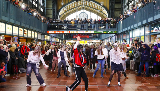 Am 31. Oktober 2025 verwandelte sich die Wandelhalle im Hamburger Hauptbahnhof in eine Bühne der besonderen Art: Rund 150 Tänzer:innen aus Deutschland, Österreich und der Schweiz ließen die legendäre Thriller-Choreografie von Michael Jackson in einer eindrucksvollen Live-Performance wieder aufleben.