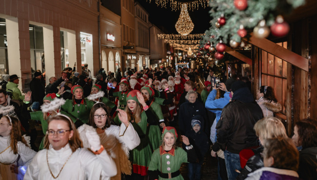 Dreimal am Tag – 13:00, 15:00 und 17:00 Uhr – zieht die große Weihnachtsparade durch die liebevoll dekorierten Straßen. Angeführt wird sie von einem prachtvollen Weihnachtswagen, der in diesem Jahr von Lichteffekten des Eutiners Stefan Teichmann veredelt wurde.