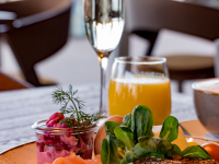 An der Warnemünder Strandpromenade wartet im Hotel Neptun das Restaurant Weineck mit mecklenburgischen und mediterranen Speisen auf euch. Am Wochenende öffnet das Weineck schon um 9 Uhr, so dass ihr in Ruhe genussvoll schlemmen könnt. Lasst angesichts des fantastischen Meerblicks entspannt die Gedanken kreisen und erlebt mit eurer Familie oder mit Freunden Genuss pur. Freut euch auf knusprige Brötchen, fluffige Croissants, frischen Kaffee, Orangensaft, Käse, Räucherlachs, Eierspeisen und regionale Wurst beim Brunch.