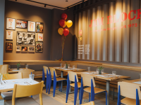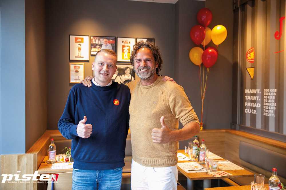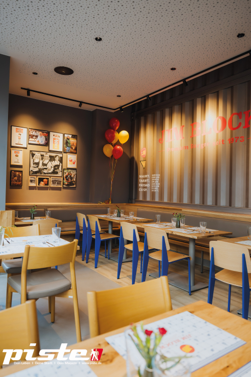 Auf 120 Quadratmetern bietet Jim Block 77 Sitzplätze im Restaurant und 42 auf der Terrasse. Im Design trifft nordische Klarheit auf moderne Urbanität: Backstein, Delfter Fliesen, Containeroptik, Möbel im Industrie-Style und eine halboffene Decke verleihen dem Restaurant einen unverwechselbaren, zeitgemäßen Charakter, der die Herkunft und Zukunft der Marke gleichermaßen widerspiegelt. Kulinarisch bietet das Restaurant seinen beliebten JB Burger, JB Cheese und JB Champignon an. Das Rindfleisch kommt von Partner-Landwirten aus dem eigenen Block House Rinderaufzuchtprogramm aus MV. Krosse Pommes sowie die bekannte Block House Ofenkartoffel mit Sour Cream, saftiges Chicken und ein Kids Menü komplettieren das Angebot.