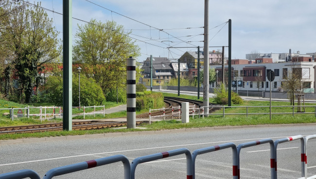 Nun steht der lang angekündigte Blitzer am Mühlendamm/ Ecke Warnowstraße. Für Autofahrer heißt es ab sofort: Runter vom Gas, denn hier handelt es sich um eine 30er Zone. Ob die geplante Ausweitung der 30er Zone bis zum Weißen Kreuz kommt, ist derzeit nicht bekannt. Unklar ist uns hingegen, wie der Blitzer an dieser Stelle die Verkehrssicherheit der Radfahrer auf dem gemeinsam genutzten Fuß- und Radweg auf der anderen Straßenseite erhöhen kann. Laut einem Artikel in der Ostsee Zeitung vom 2. Dezember 2025 wurde der Standort vom zuständigen Amt aus diesem Grund ausgewählt: „Anlass hierzu seien eine hohe Beschwerdelage und „glaubhaft geschilderte Beinaheunfälle“.