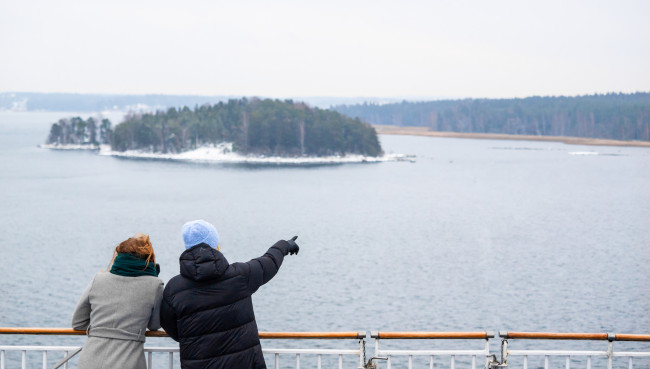 An Bord erwarten die Passagiere komfortable Kabinen, Vollpension im Buffet-Restaurant, eine Bar sowie Sauna und Whirlpool. Ein kleiner Shop ergänzt das Angebot der rund 30-stündigen Überfahrt. Ein unvergessliches Highlight ist die Ankunft im Hafen von Helsinki: Frühaufsteher können beobachten, wie das Schiff Eisschollen beiseiteschiebt, während die Schärenlandschaft in winterlicher Pracht erstrahlt.